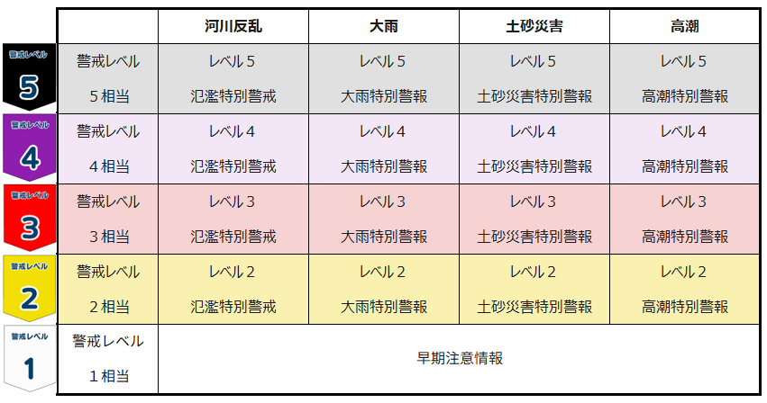 これにより、防災上の緊急度(レベル1〜5)がより明確に伝わる表現へと変わります。